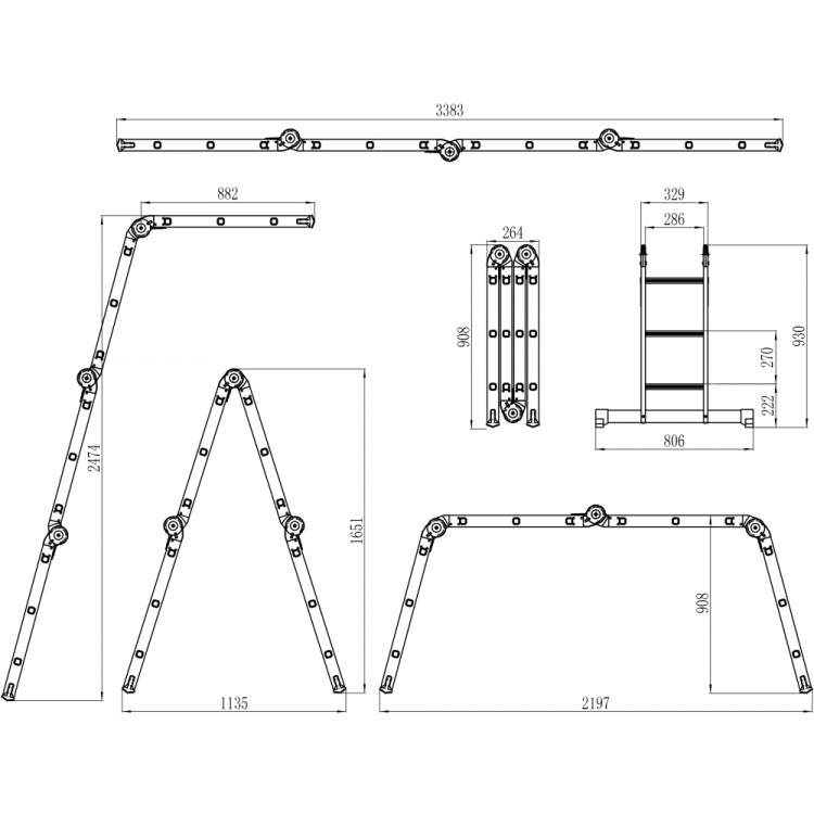 - Can be used as a straight ladder or stepladder or work platform.